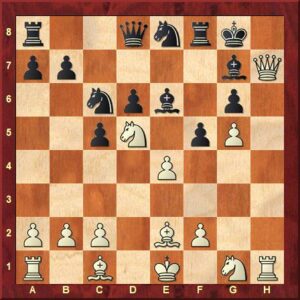 Weiß: Liu Wenzhe Schwarz: Donner BuenosAires 1978 1.e4 d6 2.d4 Sf6 3.Sc3 g6 4.Le2 Lg7 5.g4 h6 6.h3 c5 7.d5 0-0 8.h4 e6 9.g5 hxg5 10.hxg5 Se8 11.Dd3 exd5 12.Sxd5 Sc6 13.Dg3 Le6 14.Dh4 f5 15.Dh7+