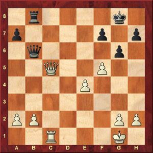 26…Tab8 27.Dxc3 (sonst folgt einfach cxb2)…27…Db6+ 28.Tc5 Txc5 29.Dxc5